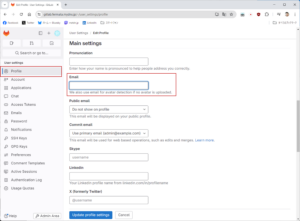 「Update profile settings」ボタンを押下して保存します。GitLabのメールアドレスの設定が正しければ、確認メールが届きます。本人確認のためのURLが記載されているので本人確認手続きを行ってください。